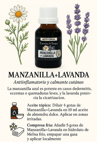 Ungüentos: Utilizando aceites de semilla, gel base, crema base como vehículo. Tratamientos corporales 5 a 10 gotas para 20 ml de vehículo. Tratamientos faciales 4 a 6 gotas para 20 ml de vehículo.